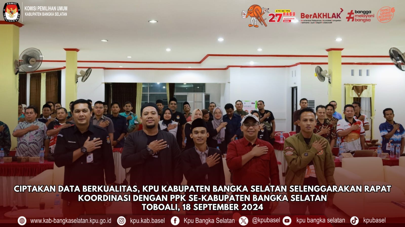 (18 September 2024); Ciptakan Data Berkualitas, KPU Kabupaten Bangka Selatan Selenggarakan Rapat Koordinasi Dengan PPK Se-Kabupaten Bangka Selatan.