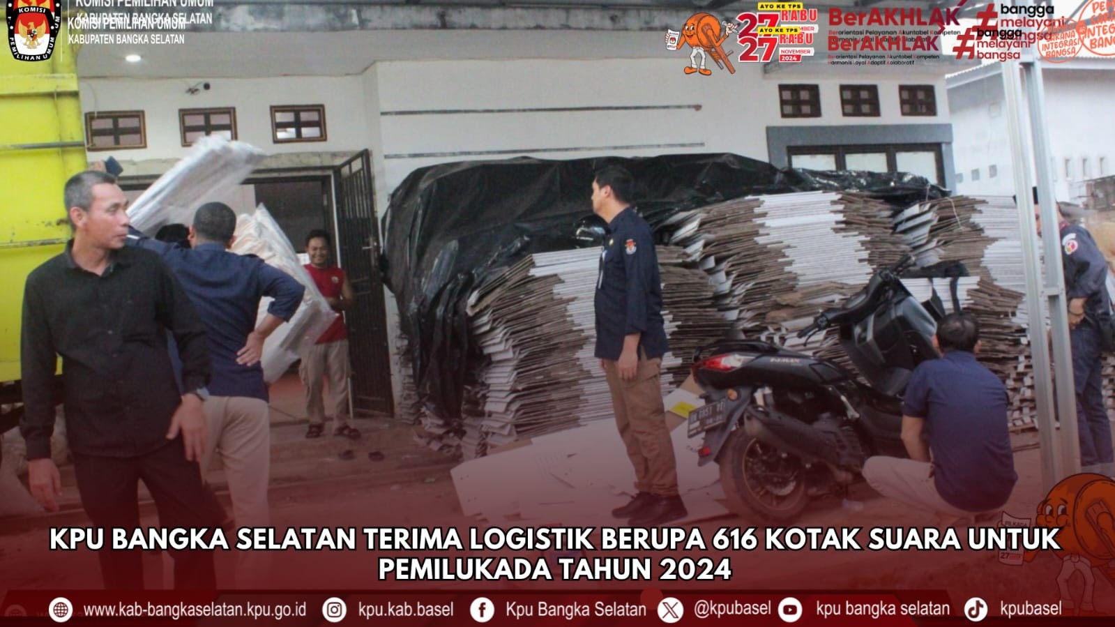 (17 September 2024); KPU Bangka Selatan Terima Logistik berupa 616 Kotak Suara untuk Pemilukada Tahun 2024.