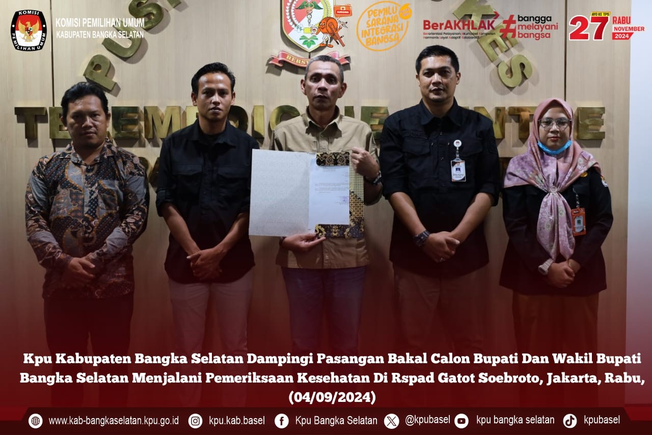KPU Kabupaten Bangka Selatan dampingi Pasangan Bakal Calon Bupati dan Wakil Bupati Bangka Selatan menjalani pemeriksaan kesehatan di RSPAD Gatot Soebroto, Jakarta