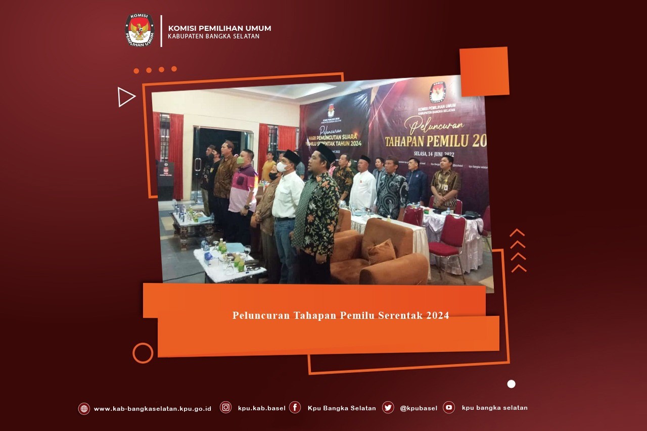Toboali, kab-bangkaselatan.kpu.go.id - Selasa, 14 Juni 2022 bertempat di Kantor Komisi Pemilihan Umum Kabupaten Bangka Selatan. KPU Kabupaten Bangka Selatan menggelar acara nonton bareng kegiatan Peluncuran Tahapan Pemilu 2024 secara daring melalui aplikasi zoom meeting bersama Forum Koordinasi Pimpinan Daerah (Forkopimda) Kabupaten Bangka Selatan, Bawaslu Kabupaten Bangka Selatan, Perwakilan Partai Politik Se-Kabupaten Bangka Selatan dan Tamu Undangan Lainnya. Kegiatan Peluncuran Tahapan Pemilu 2024 ini diselenggarakan di Gedung KPU RI jalan Imam Bonjol No. 29, Menteng, Jakarta Pusat. Acara Peluncuran tahapan Pemilu 2024 ditandai dengan penekanan bersama tombol sirine oleh Ketua KPU Republik Indonesia, Ketua DPR Republik Indonesia, Menteri Dalam Negeri Republik Indonesia, Anggota KPU Republik Indonesia dan Sekretaris Jenderal KPU Republik Indonesia. Acara Peluncuran ini menjadi penanda secara resmi dimulainya tahapan-tahapan Pemilu 2024, sebagaimana diketahui bahwa pelaksanaan Pemilu Tahun 2024 akan dilaksanakan pada tanggal 14 Pebruari 2024. KPU Republik Indonesia dalam hal ini telah menerbitkan Peraturan KPU Republik Indonesia Nomor 3 Tahun 2022 tentang Tahapan dan Jadwal Penyelenggaraan Pemilihan Umum Tahun 2024 sebagai dasar dimulainya Tahapan Pemilu Tahun 2024.