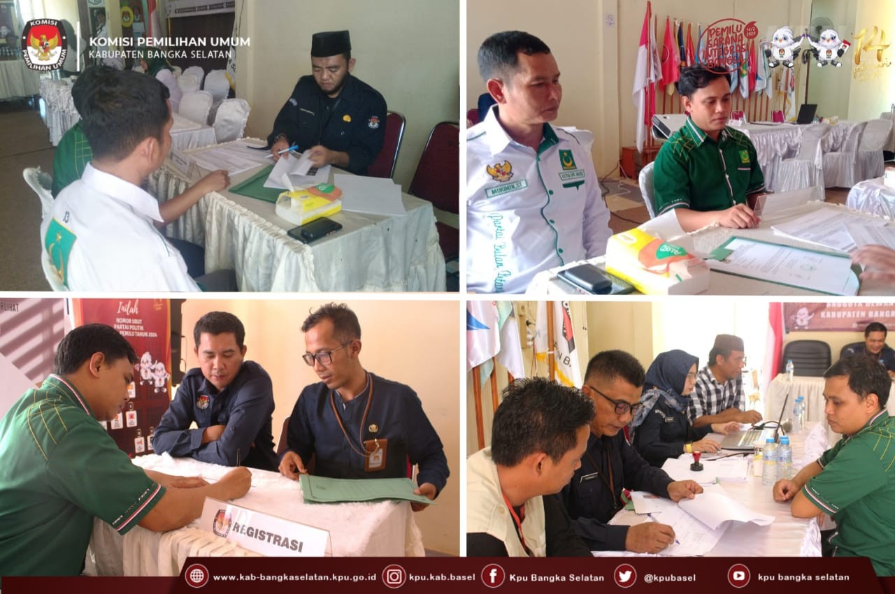 Anggota KPU Kabupaten Bangka Selatan serta Sekretaris KPU Kabupaten Bangka Selatan, secara simbolis menerima berkas pengajuan yang dilakukan oleh Pimpinan Partai Bulan Bintang (PBB) bersama Dewan Pimpinan partai lainnya.
