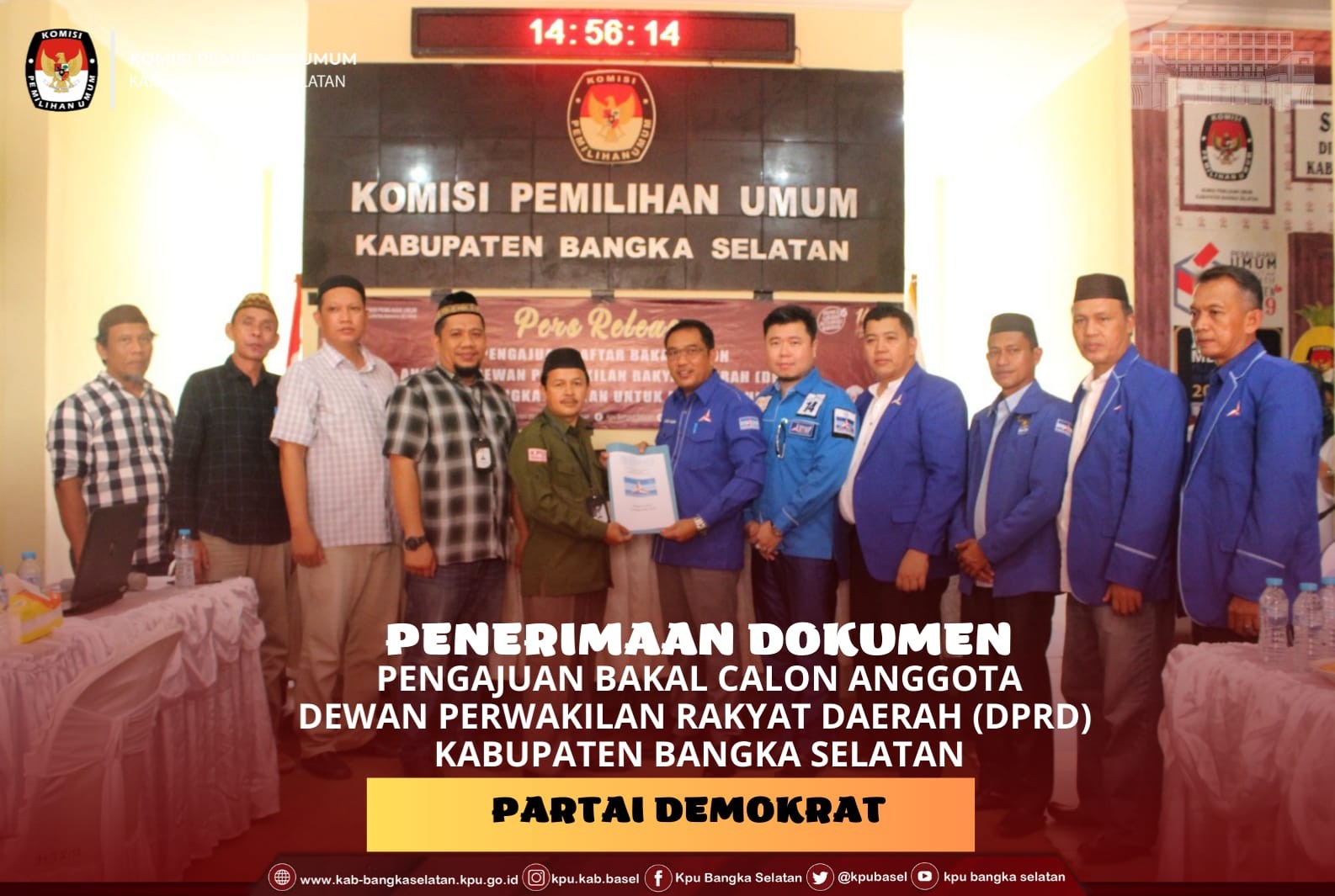 #TemanPemilih, KPU Kabupaten Bangka Selatan menerima kehadiran Partai DEMOKRAT dalam rangka Pengajuan Bakal Calon Anggota Dewan Perwakilan Rakyat Daerah (DPRD) Kabupaten Bangka Selatan, Sabtu (13/05/2023).