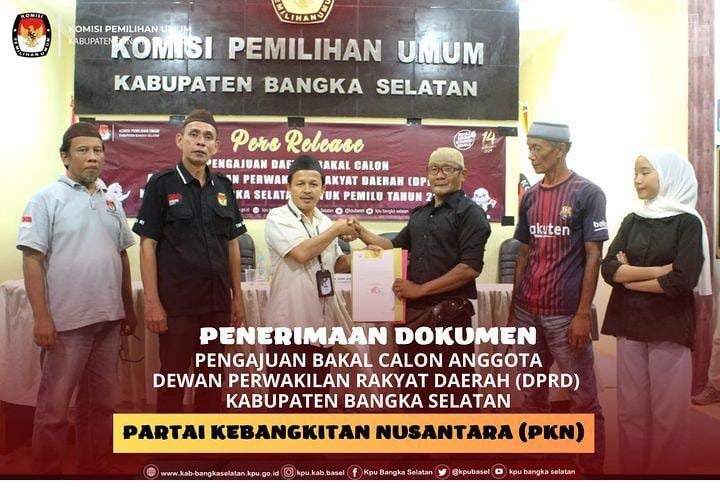 Penerimaan dokumen Pengajuan Bakal Calon Anggota Dewan Perwakilan Rakyat Daerah (DPRD) Kabupaten Bangka Selatan Partai Kebangkitan Nusantara (PKN)