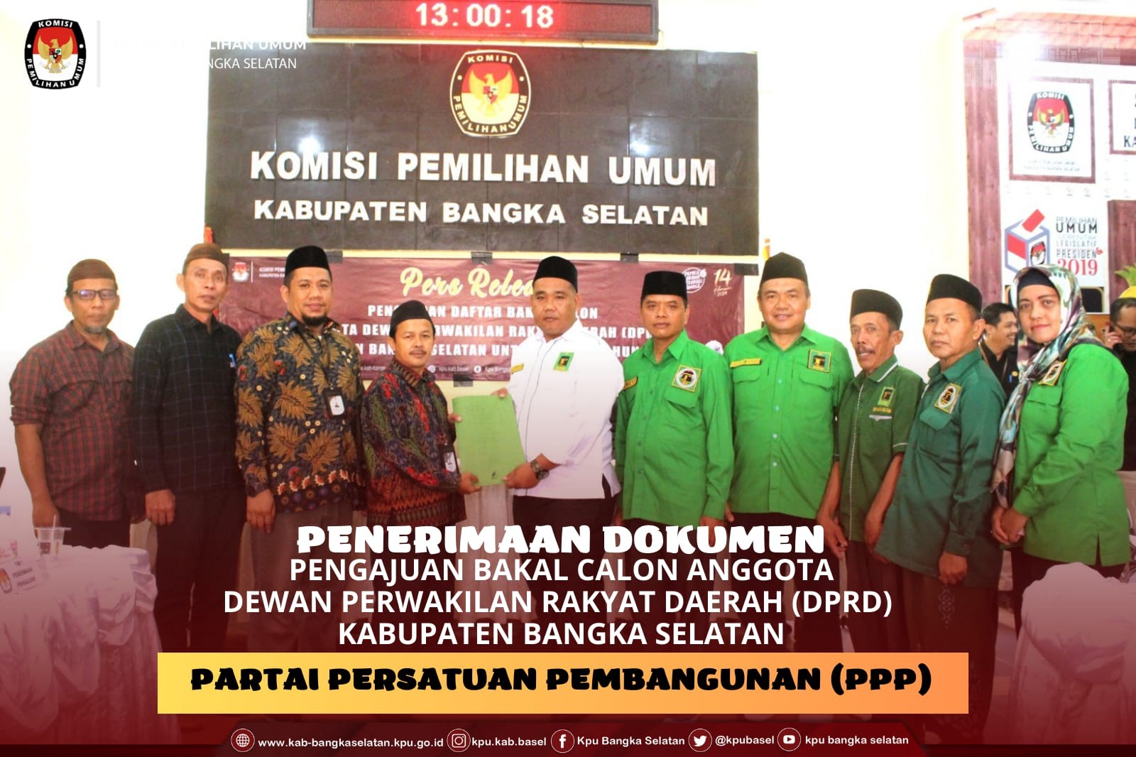 Penerimaan dokumen Pengajuan Bakal Calon Anggota Dewan Perwakilan Rakyat Daerah (DPRD) Kabupaten Bangka Selatan Partai Persatuan Pembangunan (PPP)