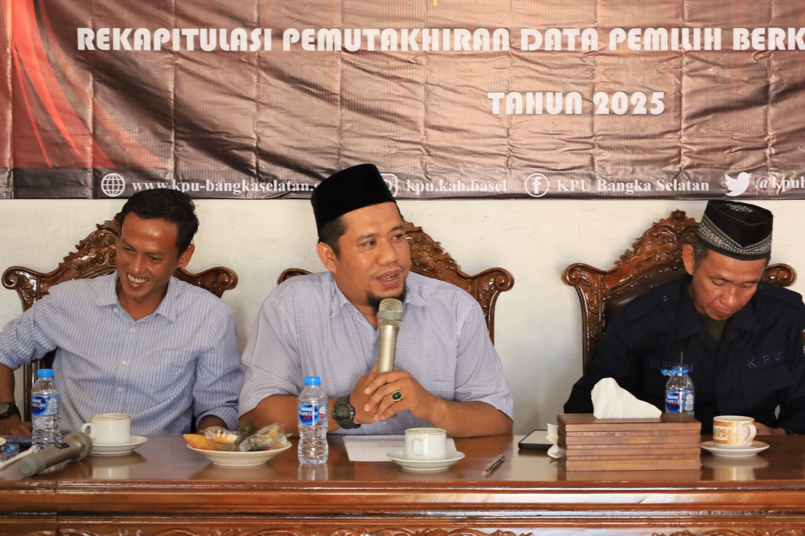 Hari Rabu Tanggal 2 Juli Tahun 2025 - KPU Kabupaten Bangka Selatan telah melaksanakan Rapat Pleno Pemutakhiran Data Pemilih Berkelanjutan (PDPB) Triwulan II Tahun 2025, yang di hadiri oleh Ketua KPU Kabupaten Bangka Selatan Muhidin beserta Anggota Komisi Pemilihan Umum Kabupaten Bangka Selatan yaitu Dese Candra Divisi Hukum, Rahmad Nadi Divisi Perencanaan, Data dan Informasi, Syahrullah Divisi Sosial Pendidikan Pemilih, Partisipasi Masyarakat dan Sumber Daya Manusia dan Zio Loenzah Monarek Divisi Teknis Penyelenggara, beserta Stake Holder yaitu Polres Bangka Selatan, Kodim 0432 Bangka Selatan, Bawaslu Kabupaten Bangka Selatan, Kemenag Bangka Selatan, Disdukcapil Bangka Selatan dan BPS Bangka Selatan.