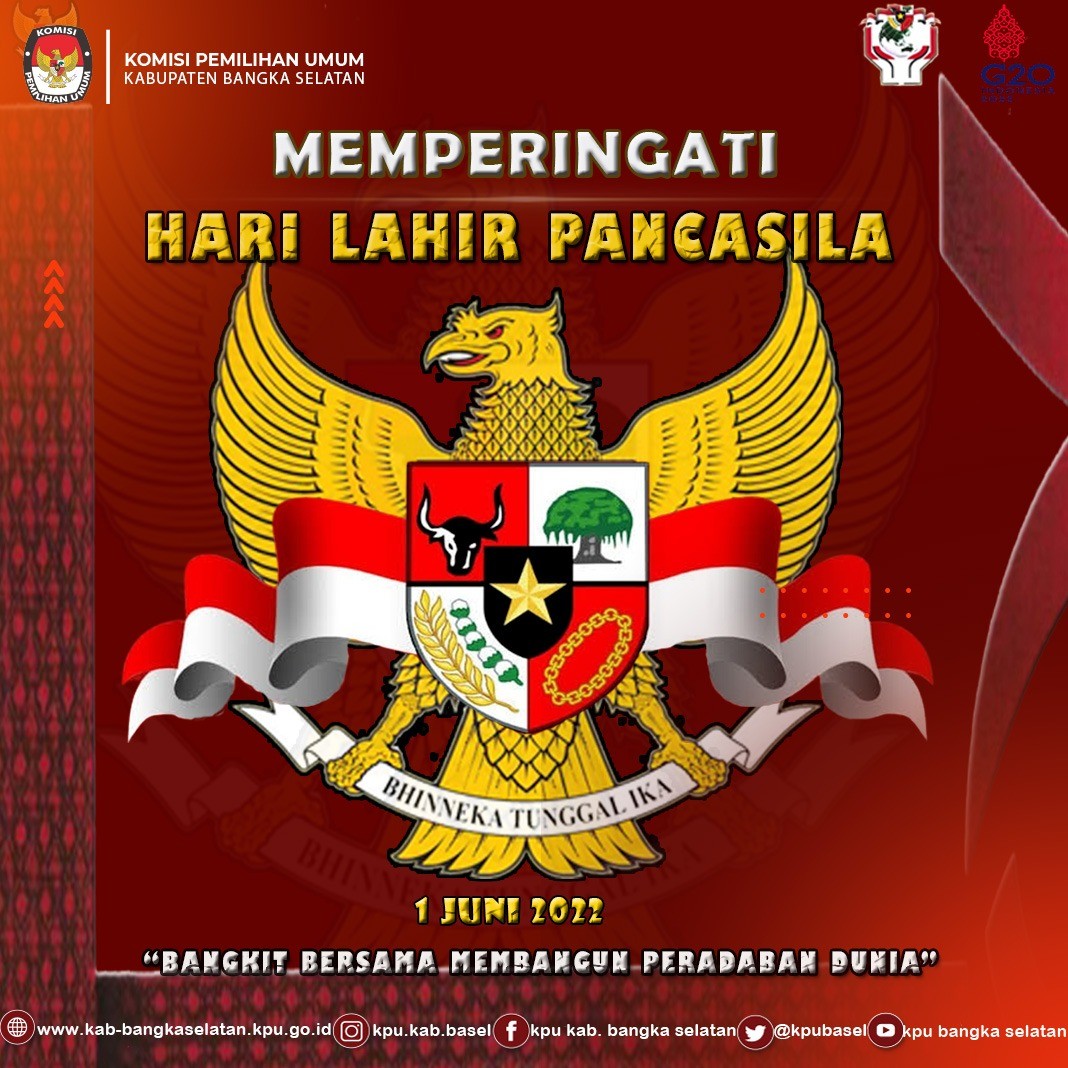 Segenap keluarga besar KPU Kabupaten Bangka Selatan mengucapkan selamat memperingati Hari Lahir Pancasila 1 Juni 2022.