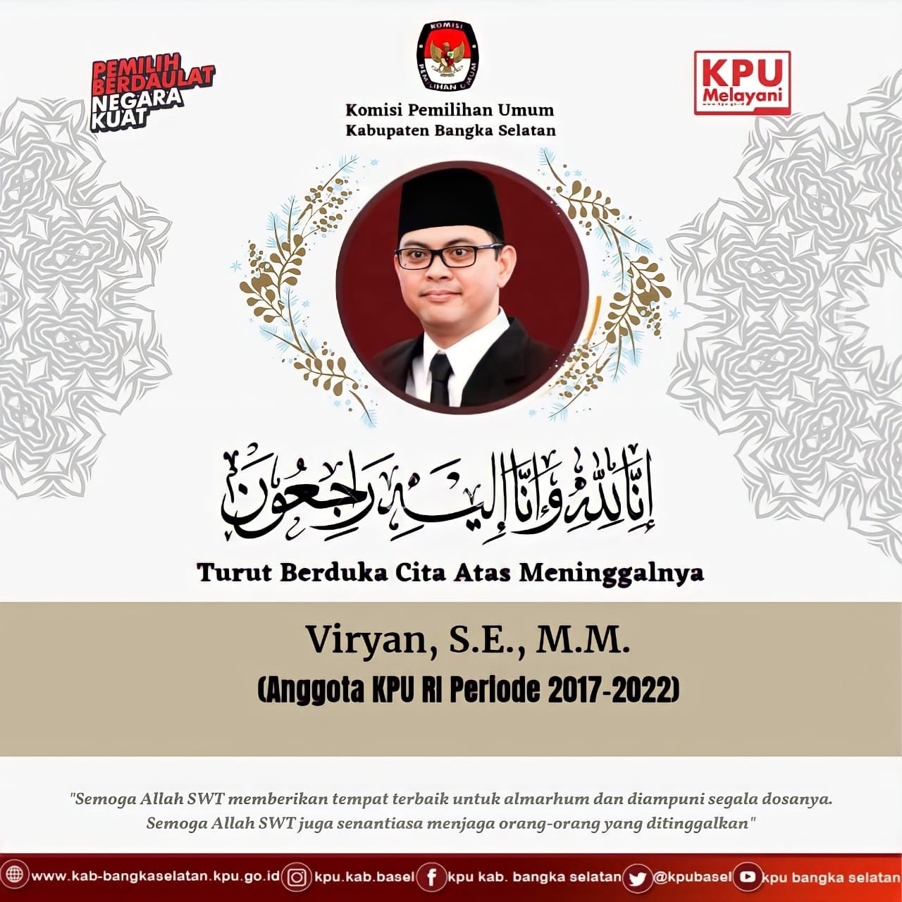 Segenap Keluarga Besar KPU Kabupaten Bangka Selatan mengucapkan Turut Berduka Cita Atas Meninggal Bapak Viryan Aziz (Anggota KPU RI Periode 2017-2022). Semoga Keluarga yang ditinggalkan diberi kesabaran. Selamat Jalan Pejuang Demokrasi.